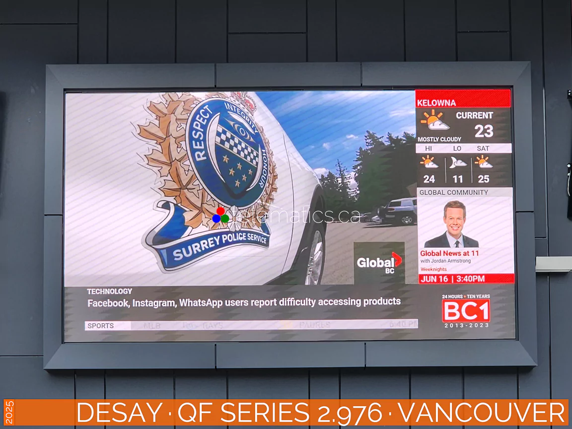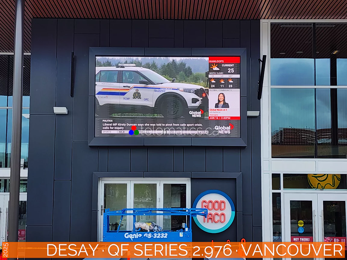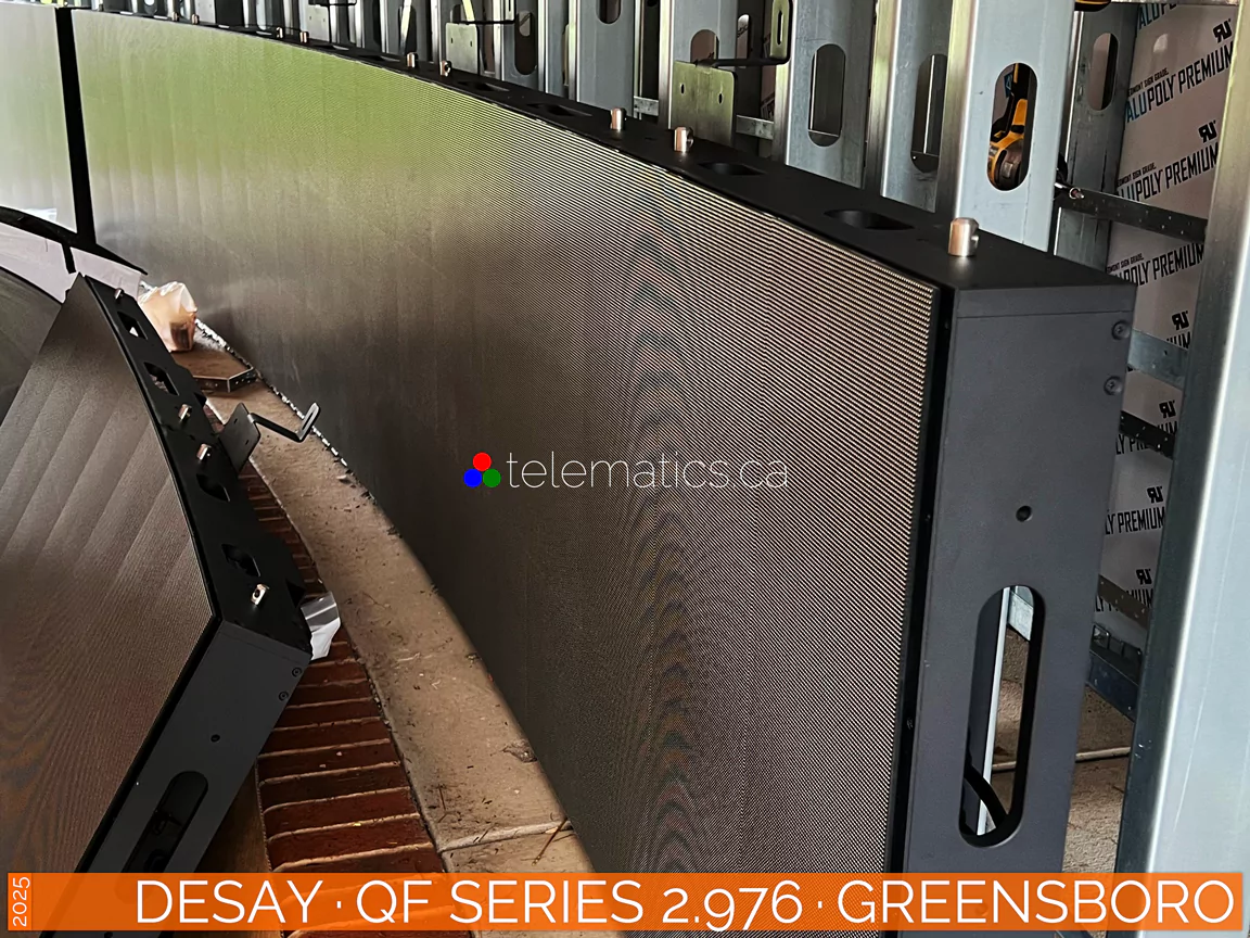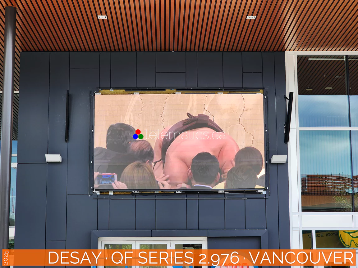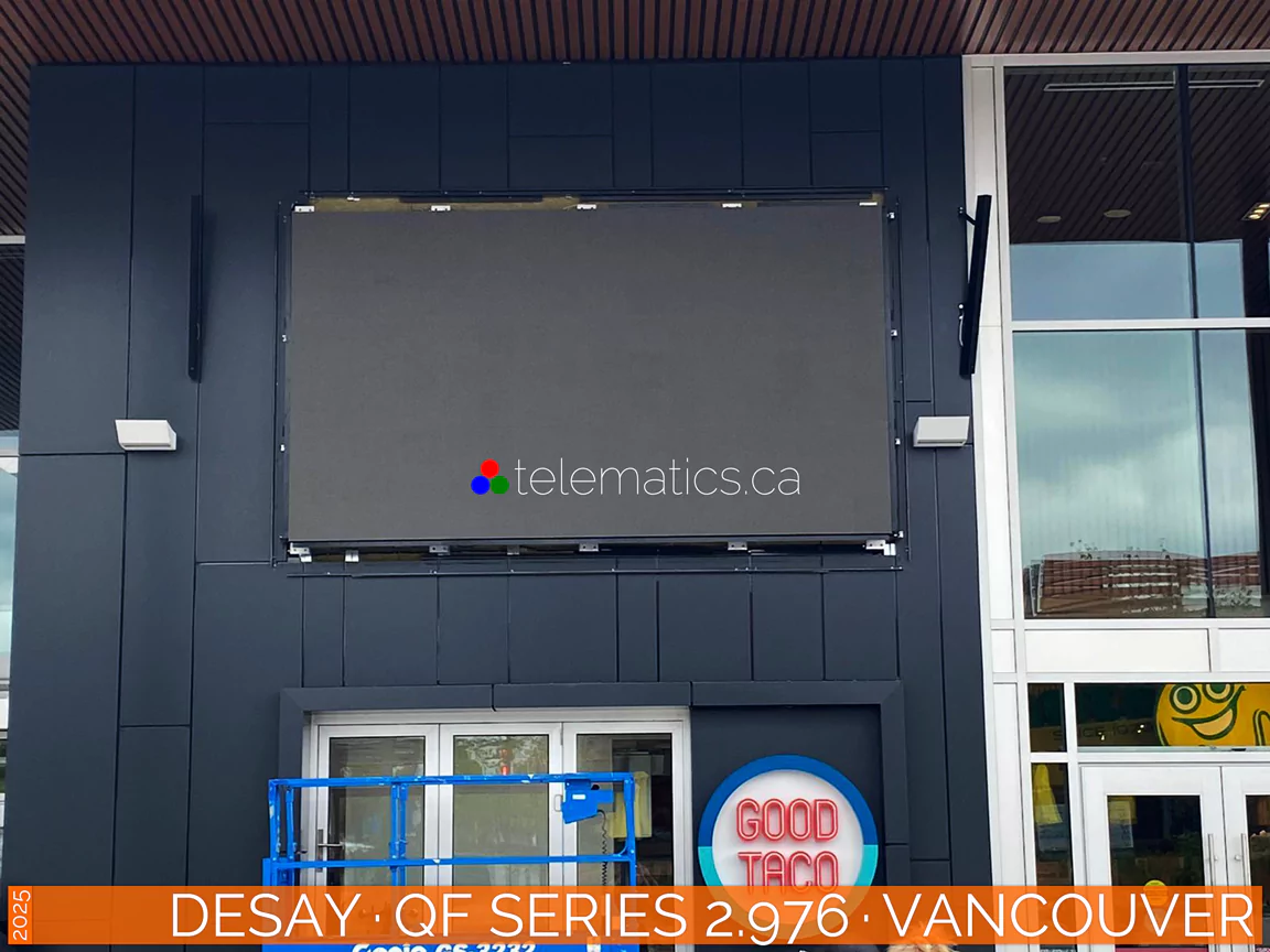 For further information or to discuss your project, please contact Telematics Canada. | Pixel Pitch · 2.976Pixel pitch, measured in millimeters, is the distance from the center of one LED pixel to the next, determining image clarity, resolution, and optimal viewing distance. The industry rule of thumb is that for every millimeter of pixel pitch, the corresponding viewing distance is one meter. A pixel pitch of 2.976 is best viewed from 3 meters or more for optimal results. Calculate pixel density by dividing 2.976 into 1000 millimeters for 336 pixels per linear meter. Square this result for a product of 112,896 pixels per square meter and multiply by your display height and width to determine your total resolution.