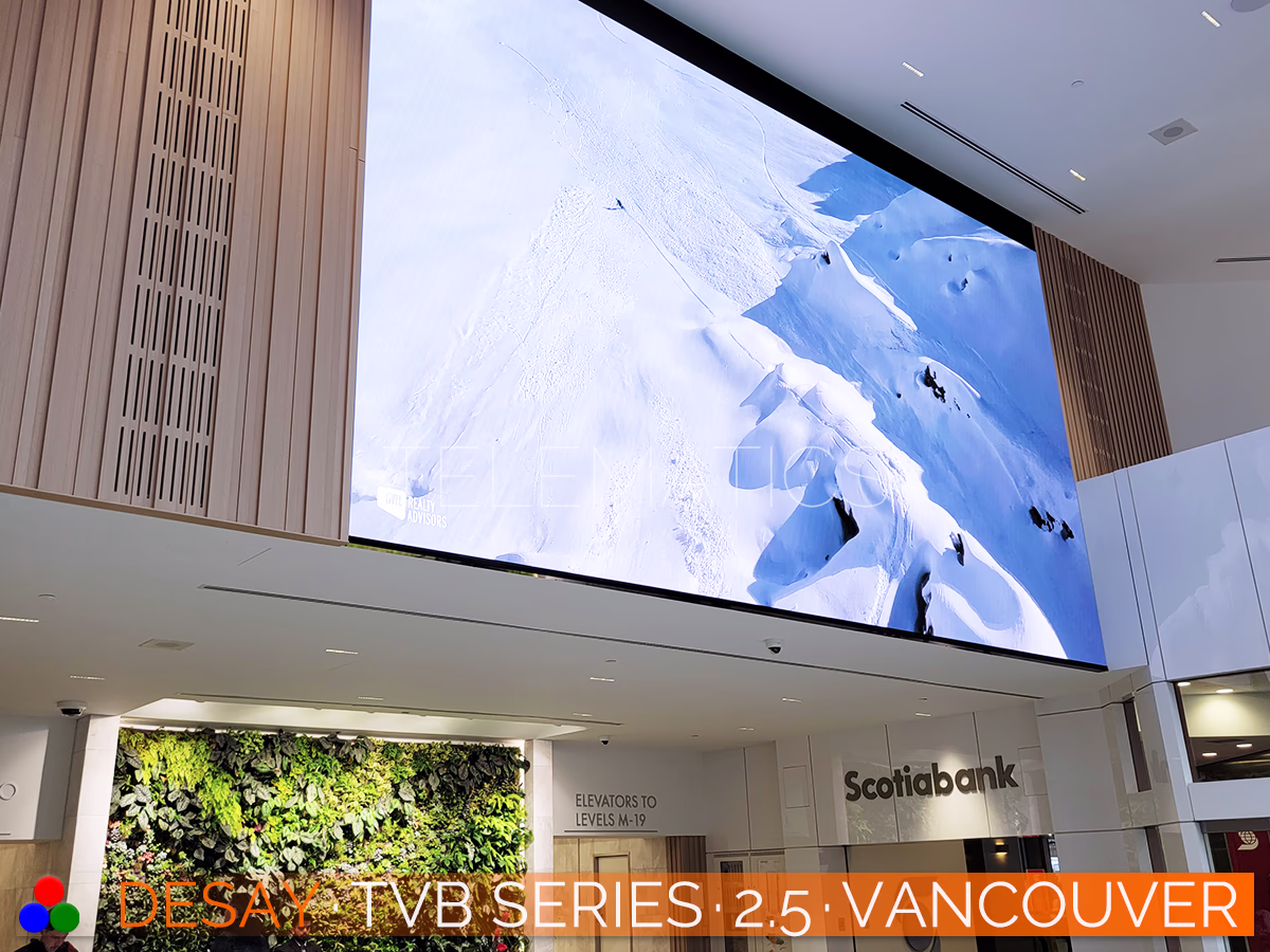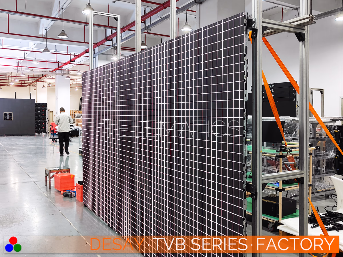 2026 · USD $ 2,238 ⁞ Desay TVB Series LED Panels · 0.781 to 2.500 ⁞ The Desay TVB Series is a premium indoor LED panel designed for high-resolution applications with natural 16:9 aspect ratios. The Desay TVB Series supports concave or convex configurations and our 18mm French Cleat frame for incredibly low-profile installations. Your Desay TVB Series display will be equipped with premium NovaStar A10s Pro cards and MX COEX controllers.
