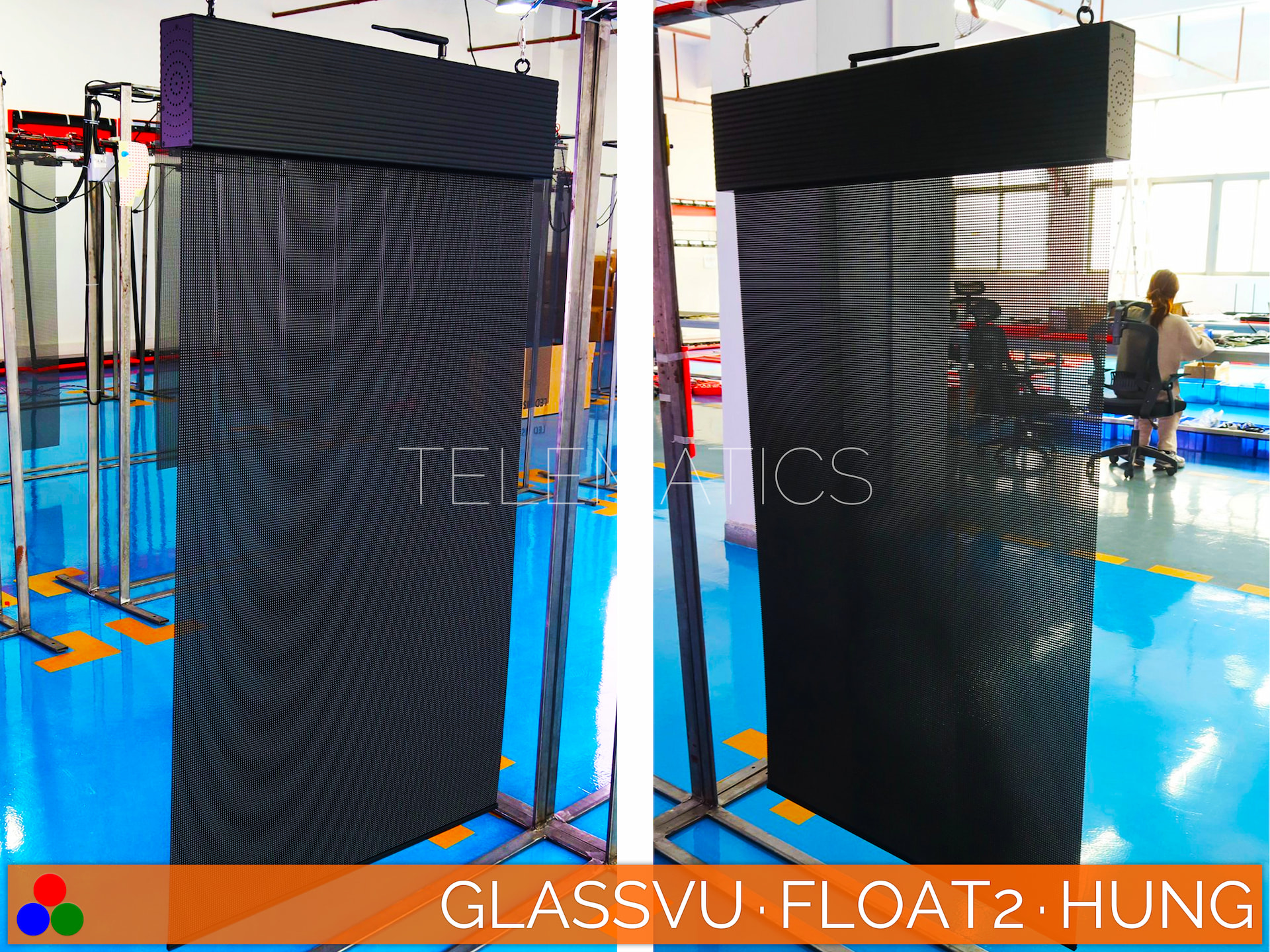 Install Pixel Mesh directly to glass using polyorganic silicon or choose our lightweight standing or suspended frames. Or specify a rolling chassis to showcase your Pixel Mesh at your next important Zoom meeting.